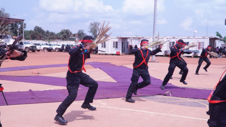 Ternate - Tarian tradisional Soya-Soya dari Provinsi Maluku Utara tampil di Hari Ulang Tahun (HUT) Bhayangkara ke-75 tahun 2021 di Bangui, Afrika Tengah.