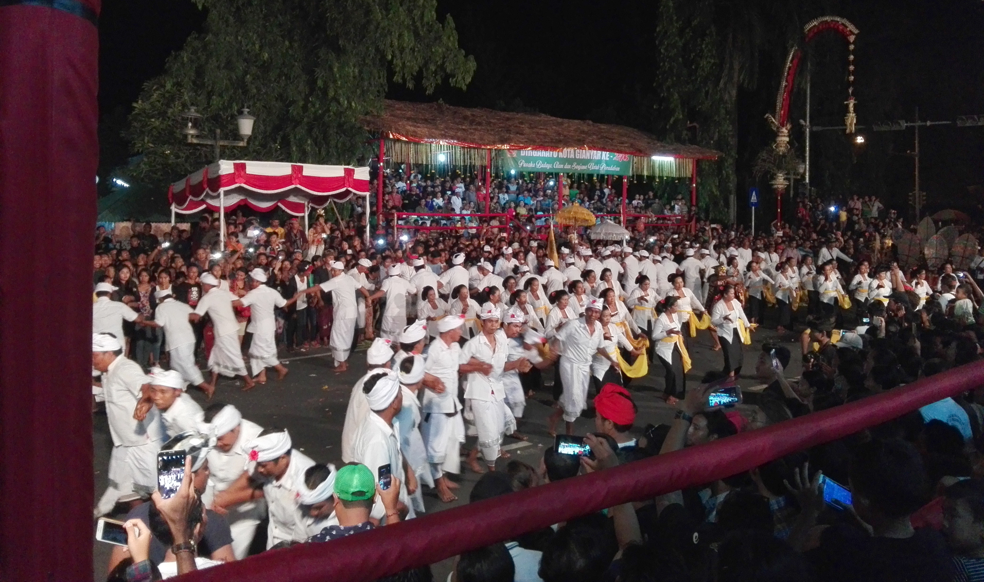 Pawai yang diikuti oleh 7 kecamatan yang ada di Gianyar ini juga diisi oleh Kota Malang dan Kota Bogor sebagai partisipan. Di pawai ini, seluruh kebudayaan yang sedang berkembang di Kabupaten Gianyar disajikan dalam bentuk tarian kolosal.